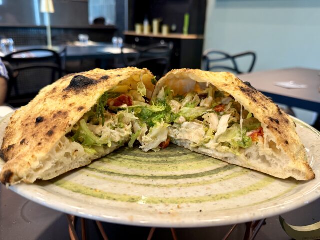 Tra le pizze da non perdere, il Ripieno al forno Pulcinella, con scarola riccia fresca, stracciata di bufala, olive nere denocciolate, alici di Cetara, dalle dimensioni generose, così come la Margherita al Monaco, con pomodoro San Marzano, fior di latte, scaglie di Provolone del Monaco, basilico e olio EVO. Tra le novità, Mammarè, condita con fiordilatte, carciofi arrostiti, capocollo di Martina Franca e patate Paglia del Partenio.