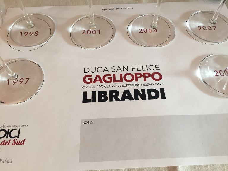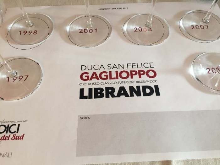Verticale Duca Sanfelice Librandi 2008-1997 con Radici a Le Giare: la leggenda del Gaglioppo a Cirò