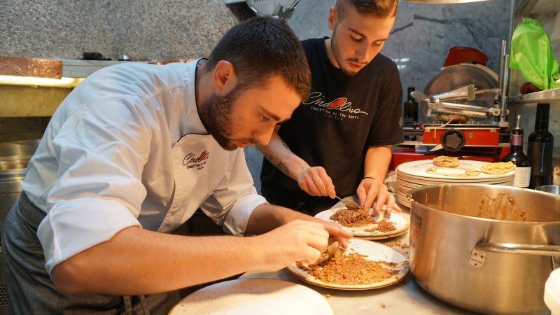 Energico, estroverso, visionario e allegro: a ventiquattro anni Ciro Oliva è il motore gastronomico della Sanità, quartiere difficile, ma con punte di eccellenze nell’artigianato e, appunto, nel cibo. In giro un vortice di taralli sugna e pepe, il mercato rionale della frutta e verdura, il fiocco di neve di Poppella, un paio di bar che fanno caffè da sballo e subito, a taglio con via Foria, la pasticceria di Mario Di Costanzo.