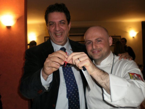 Foto ricordo al termine della serata Ciuri Ciuri, Funiculì Funicolà con il cuoco siciliano Marcello Valentino al ristorante Il Poeta Vesuviano di Carmine Mazza a Torre del Greco. Bianchi di Sylva Mala e Vero Vini