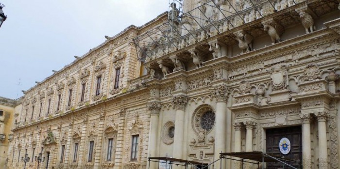 Prima di visitare le sue due tenute in Puglia, abbiamo effettuato un breve tour nella città di Lecce, che ci ha estasiato: il “barocco leccese”, le sue strade strette e pulite, i suoi ulivi secolari presenti in più punti della città ed il suo anfiteatro romano, riportato alla luce meno di un secolo fà, arricchiscono il bagaglio culturale di chiunque.