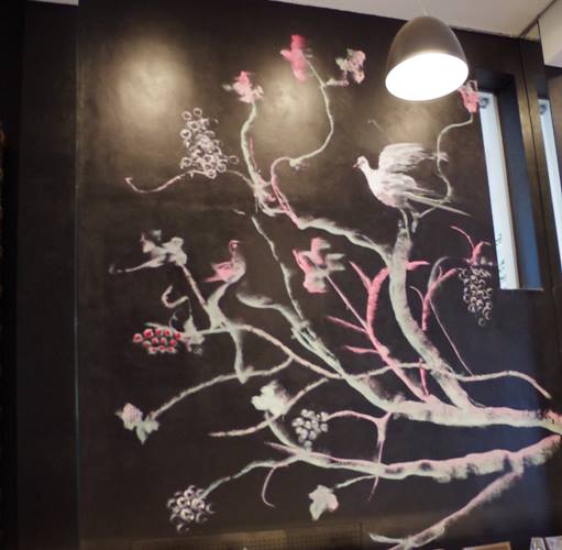 In una porzione abbastanza ampia dello stabile, riservata a degustazioni e rappresentanza, le pareti sono state impreziosite da un imponente murale, “Germinazioni3”, e da numerosi dipinti dell’artista Ercole Pignatelli, amico di Claudio.