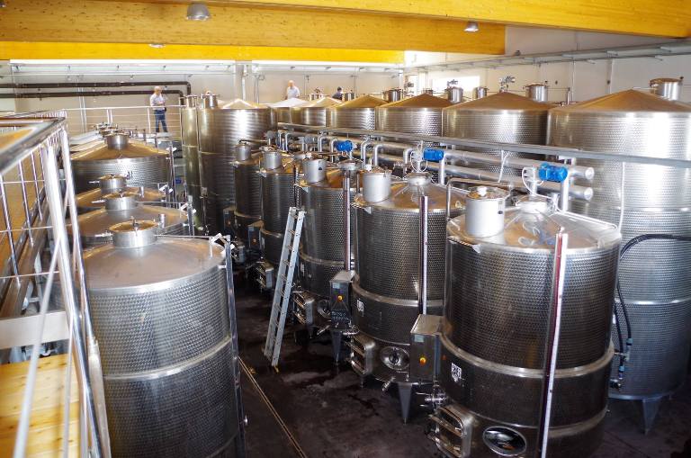 La cantina, costruita su tre livelli, sfrutta un falsopiano di 7 metri e con uno scavo nel terreno, scende di ulteriori 13 metri. Il tetto è ricoperto da un curatissimo prato per assicurare il necessario isolamento termico.