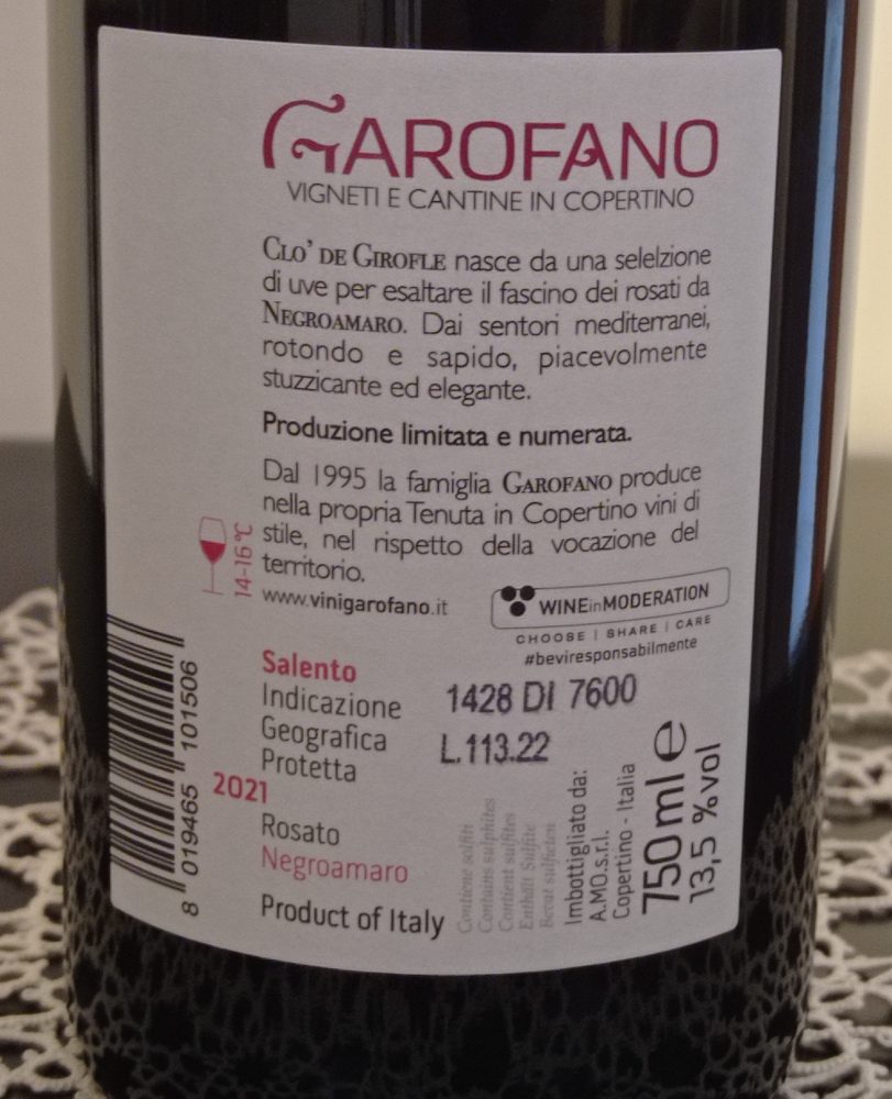 Clò de Girofle Rosato Negroamaro Salento Igp 2021 – Garofano