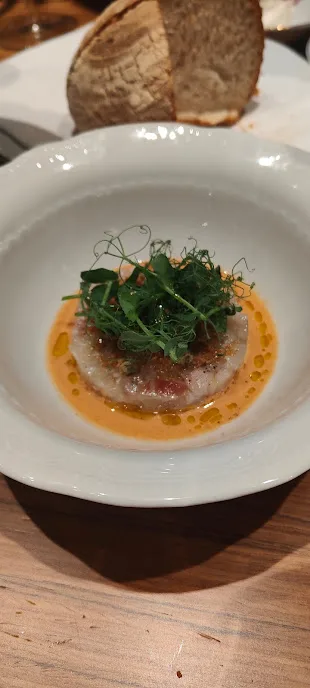 Cura dei dettagli e molta attenzione in sala: in menu portate di pesce come Tonno rosso, melanzana affumicata, pomodoro candito, basilico; Carpaccio di gambero viola, canapaccio, lime, olio alla nduja; Tartare di ricciola, con base salsa all’acqua pazza, olive nere, capperi, limone; Polpo alla brace, patate novelle, aioli, barbecue alla luciana; Tortilla di calamarelle, uova, patate, fagiolini di mare e riccio; Paella gragnanese con astice e ancora Baccalà in umido, carciofi, olive taggiasche, limone.