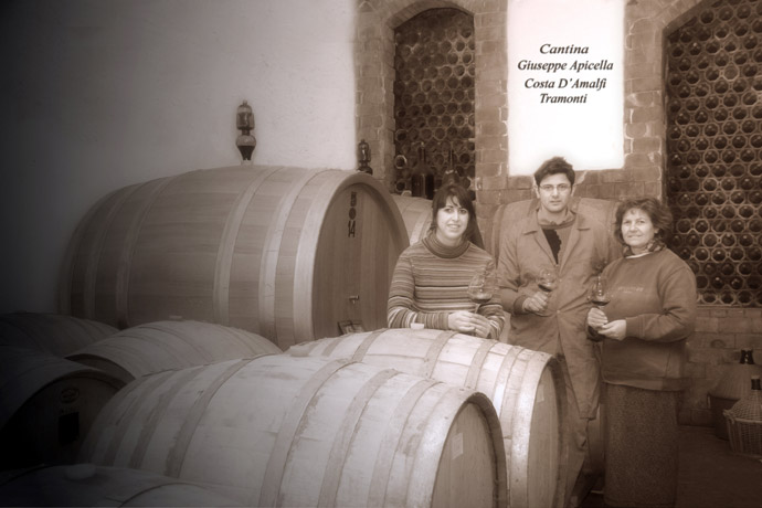 Forte di una tradizione che da secoli appartiene alle terre di Tramonti e dell’esperienza tramandata dagli avi, la famiglia Apicella, grazie soprattutto alla fiera determinazione di Giuseppe, dal 1977 nutre e coltiva la passione per la viticoltura. Questo nonostante essa sia praticata su un’orografia territoriale impervia e inaccessibile. L’impresa di coltivare la vite qui, infatti, diventa epica ed eroica, alla stregua di quanto avviene in altre località similari come l’isola d’Ischia, le Cinque Terre spezzine, la Valtellina e parte della Valle d’Aosta.