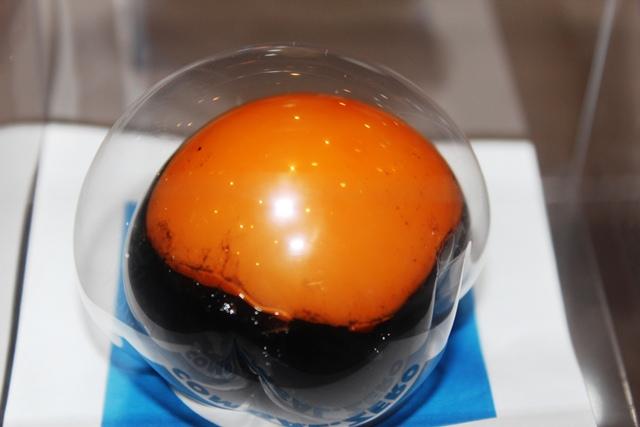 Ciber egg: uovo cibernetico formato da una doppia camera d’aria di cellophane trasparente contenente in una aria e nell’altra, rosso d’uovo, nero di seppia che può essere inciso con un bisturi o schiacciato direttamente sul palato per assaporarne il contenuto accompagnato da una Vodka liscia da bere dopo un paio minuti. Fantascientifico, esperienza palatale e di grande raffinatezza.