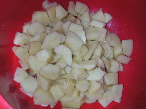 A questo punto buttate le patate tagliate a dadini sottili (per la versione al forno meglio a fette) e fate batonage energico per almeno una decina di minuti