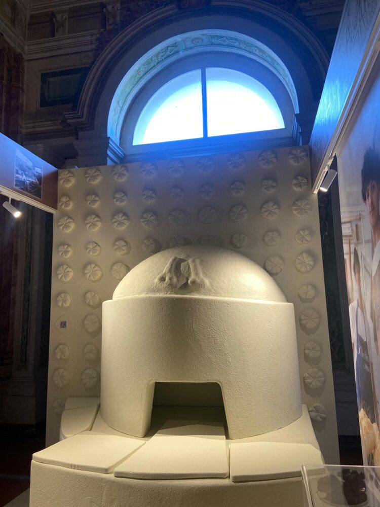 La sala Cucina: spazi, strumenti e pratiche guida il visitatore alla scoperta delle tecniche di preparazione del cibo, degli utensili utilizzati e della gestione degli ambienti domestici dedicati alla cottura. L’allestimento ci cala in una ideale cucina antica attraverso ricostruzioni e reperti per comprendere come e dove si cucinava in epoca romana, mettendo in evidenza aspetti funzionali, tecnologici e sociali. Il fulcro dell’esposizione nella grande isola espositiva è uno dei manufatti più affascinanti della mostra: una cassa lignea, rara testimonianza della vita domestica e vera e propria dispensa antica, utilizzata per conservare cibo e ritrovata con resti dei sacchetti nei quali alcuni alimenti erano conservati e frammenti di focaccia.