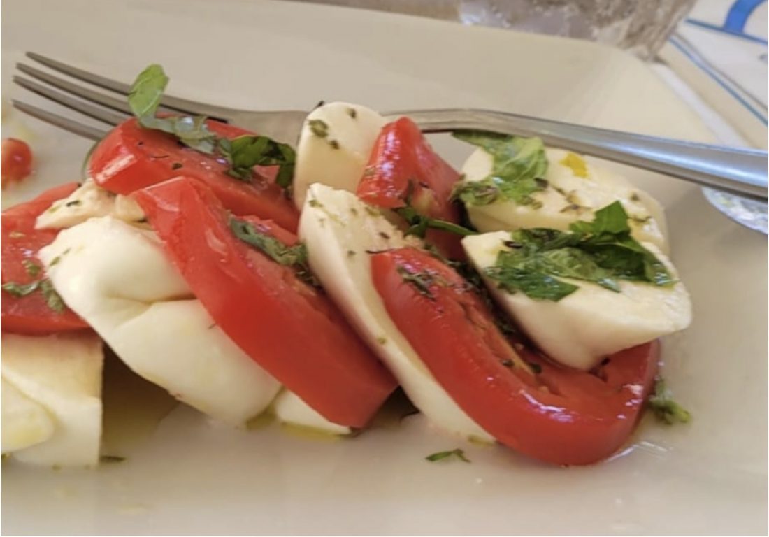 Gli ingredienti tipici sono sorrentini, il nome è caprese. L’insalata che unisce la penisola e l’isola azzurra è diventata un classico della tavola italiana e condensa caratteristiche nutrizionali di gusto e di varietà di sapori. Semplici e non manipolati. Pomodoro, treccia o fior di latte, basilico fresco, una leggera spolverata di origano, sale e olio extra vergine di oliva.