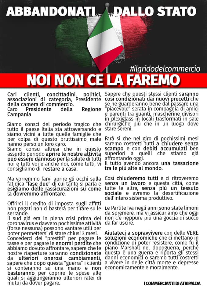I commercianti di Atripalda a de Luca: noi non ce la faremo