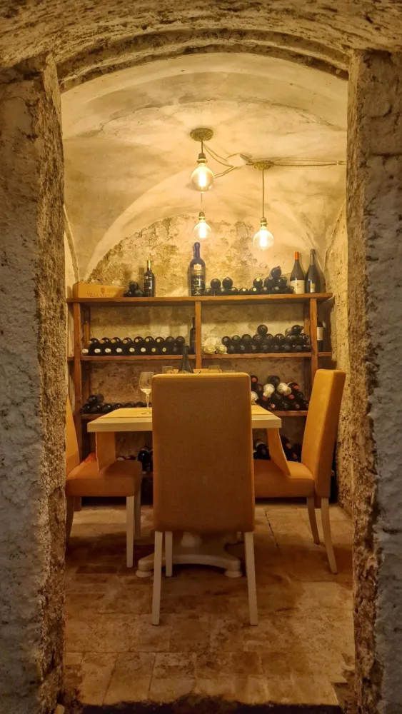 Piccola preziosità, il mini caveau ricavato in cantina idoneo ad una riservata e romantica cena per due.