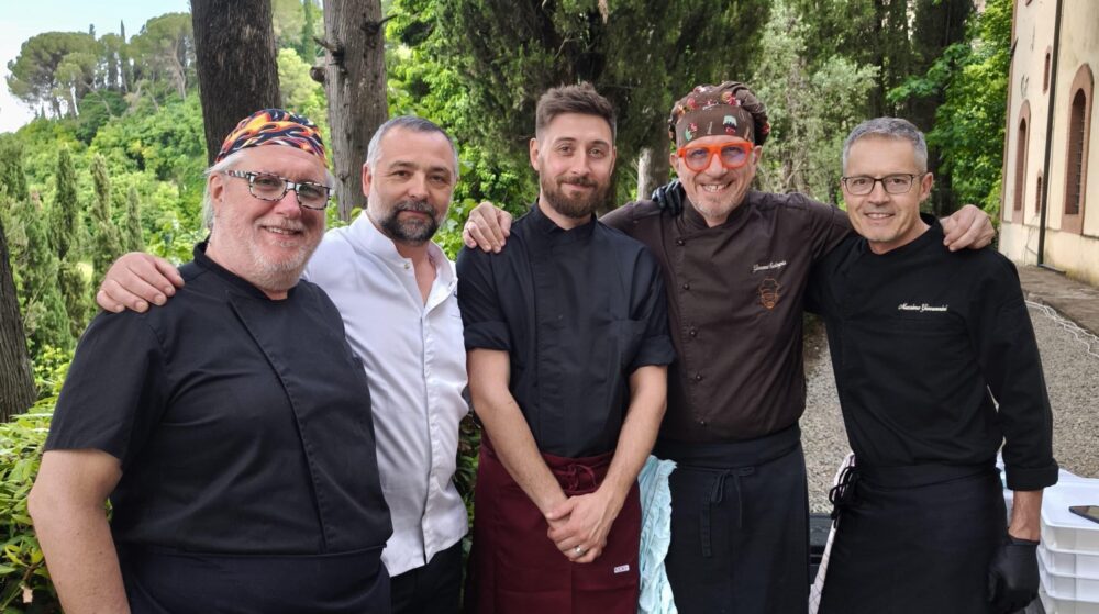 Tommaso Vatti (La Pergola di Radicondoli, Siena), di recente nominato ambasciatore del gusto ha presentato la pizza con Girello di Maremmana e cipolla di Certaldo arrosto. Un mix di sapore e croccantezza che è piaciuto agli ospiti. “Una proposta che ho in carta in estate nel mio locale, perché rappresenta la Toscana e la Maremma”, precisa Vatti.