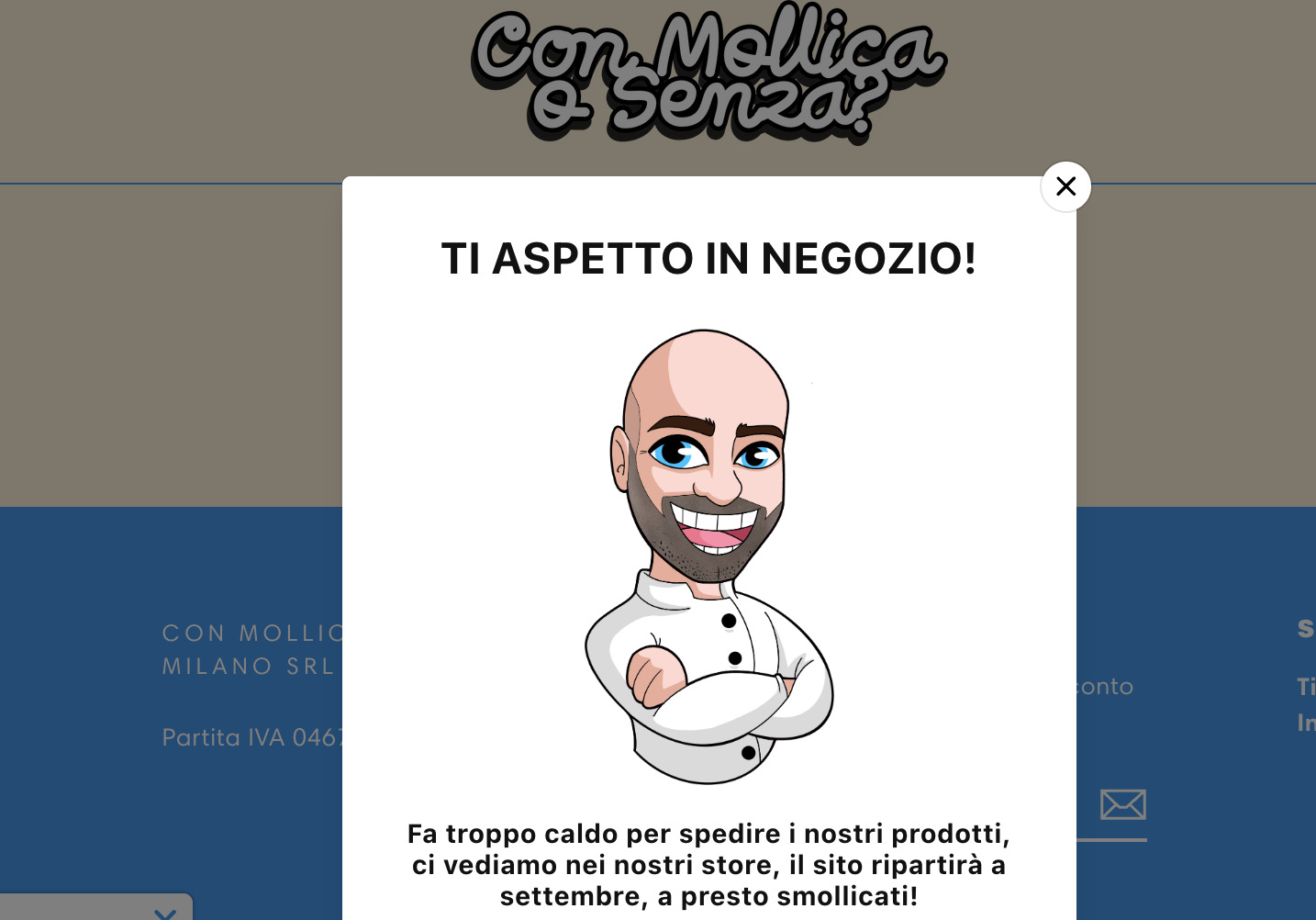 Con Mollica o Senza 28/6/2024 Torna a: Con Mollica o senza chiude per l’estate lo shop on line Screenshot