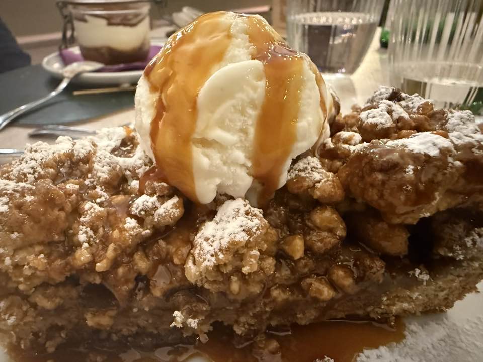 Oscenamente buona la torta di mele. Servita calda, con una pallina di gelato alla vaniglia: Voluttuosa..