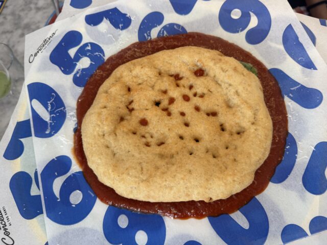 Sott’e Ngopp: la pizza fritta servita al contrario, con base pomodoro, parmigiano e origano, diventata una specialità di Concettina ai Tre Santi.