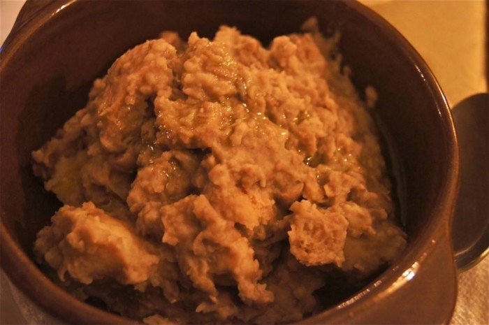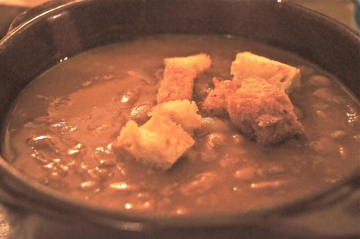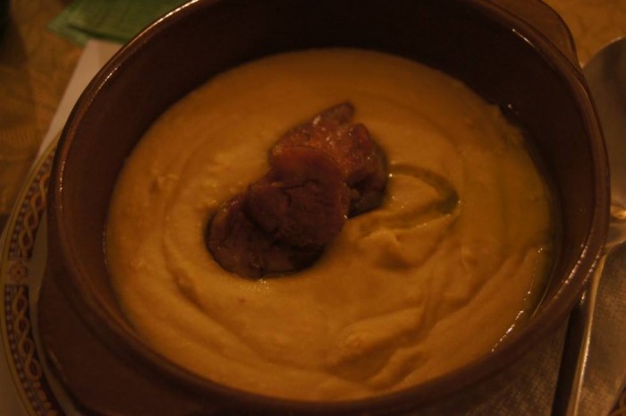 Zuppa di cicerchie con salsiccia tipica del Monte Maggiore.