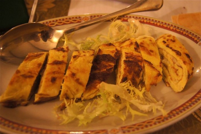 Involtino di frittata con cipolla alifana e caciocavallo del Matese.