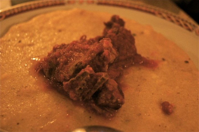 Polenta tipica di Maiorano di Monte con tracchie e cotiche di maiale.