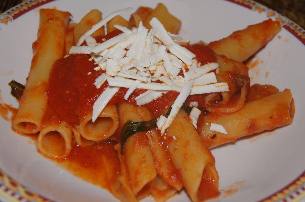 Un primo piatto: zitoni con antico ragù di montagna e ricotta salata.