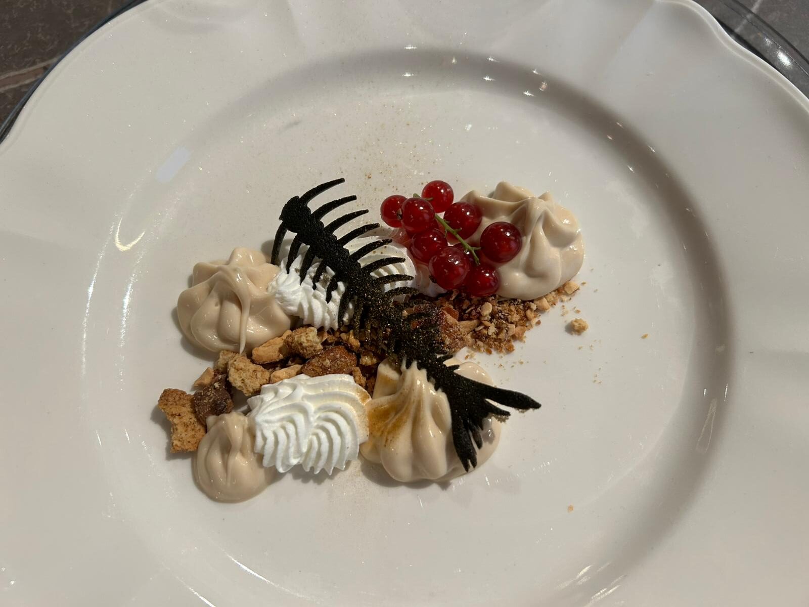 Salmone anche nel dessert: cioccolato bianco, mandorla e bergamotto, tuile di salmone. In abbinamento Etna Est! Bianco.