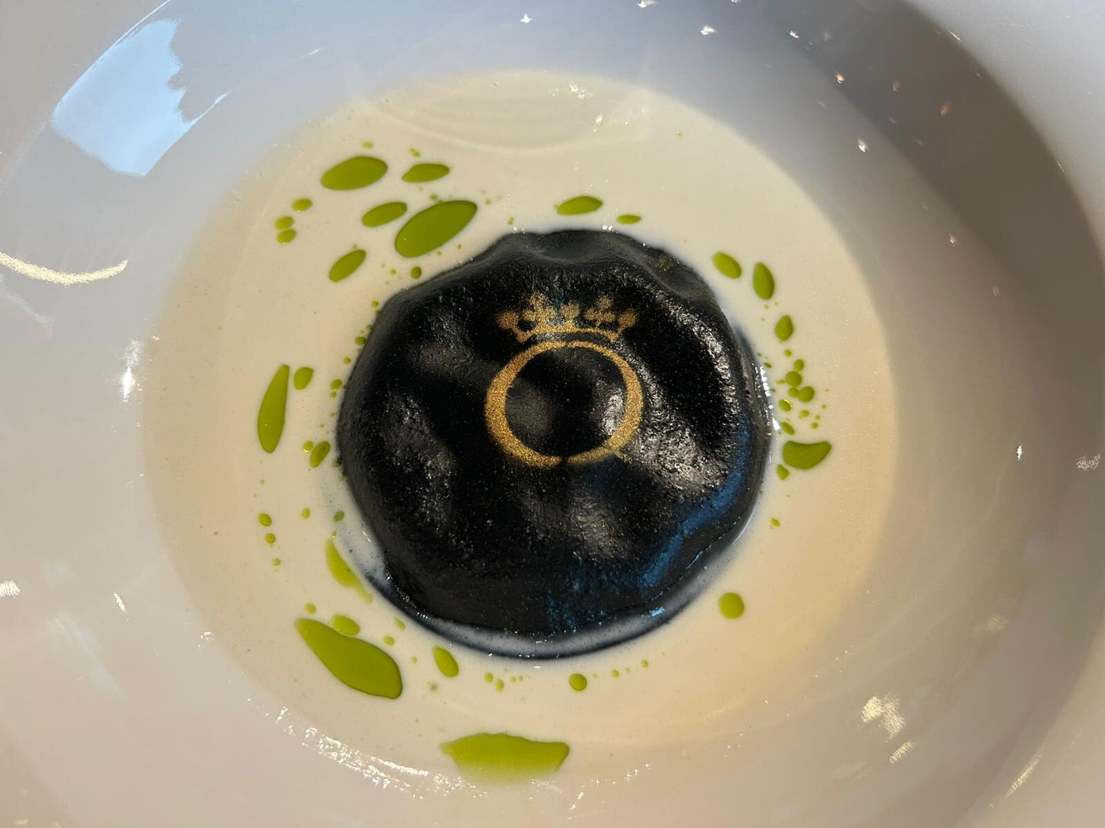 A seguire raviolo nero, erbe spontanee, salmone salinato, ricotta ovina e pepe selvatico. In abbinamento Etna Est! rosè.