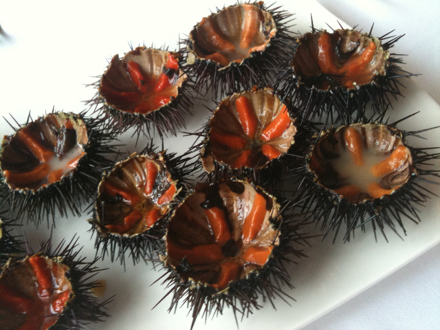 Invece me ne trovo al volo, con un bellissimo champagne, il Celebris blanc de blancs di Gosset, un paio di dozzine. Si è vero, ancora non siamo nel pieno della stagione, ma alcuni se la battono benissimo. Trovo il riccio sensuale. Sapori colori profumi ricordano sensibilmente piacevolezze di altro tipo. Mi ci perdo, languidamente…