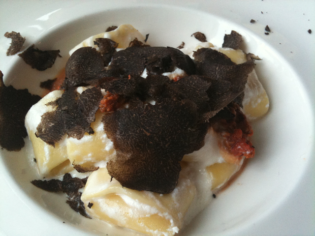 MEZZI PACCHERI, RICOTTA DI FISCELLA, POLPA DI RICCI E TARTUFO NERO DEL POLLINO