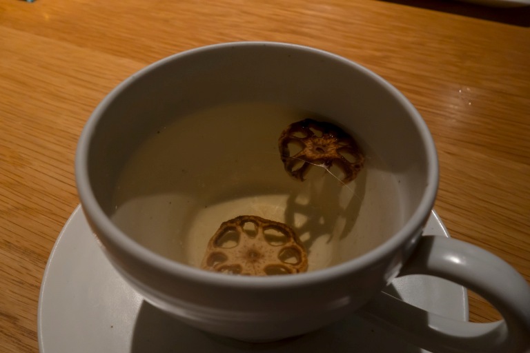 Prima del dessert, ci viene portato un ottimo infuso alla radice di loto.