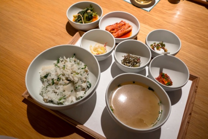 Baek Hab Sot Bab, il gran finale tradizionale, prima del dessert vero e proprio. L’idea è di avere una base saziante data dal riso, a cui accompagnare assaggio dopo assaggio i vari ingredienti, in cui le fermentazioni la fanno da padrone.