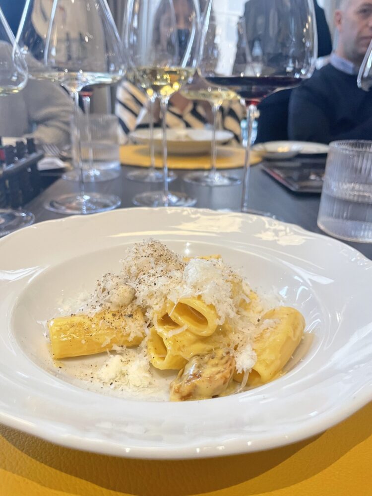 Il ciclo di pranzi si è aperto da Pipero (1*) con i piatti dello chef Ciro Scamardella dall’iconica Carbonara a l’ottima entree Ceviche di Melone alla morbida e cremosa Fregula vongole e cocco accompagnati da Franciacorta Le Marchesine, una piccola azienda che oggi rappresenta una realtà tra le più prestigiose con il suo Dosaggio zero Audens DOCG Magnum, Nodens Magnum 2016 Extra Brut, Secolo Novo Brut DOCG Magnum 2011.