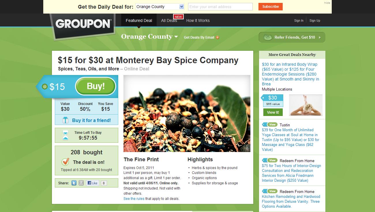 l’invitante vetrina Groupon 12/11/2011 Torna a: Così ti promuovo ristorante e agriturismo: menù a prezzi stracciati su LetsBonus e Groupon l’invitante vetrina GrouponSuccessiva →