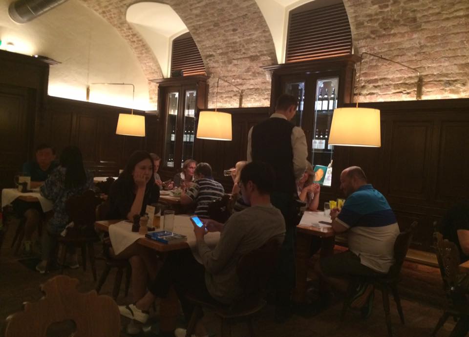 La nuova sede riprende logo e colori della casa madre; costruita su più livelli, con sale e salette dai caratteristici mattoni a vista e tanto legno scuro. Sul grosso bancone all’ingresso un libro di cucina celebra le ricette tipiche della cucina viennese (sì, ce ne sono, ma non superano la dozzina!), a partire dal loro vanto secolare: la Figlmüller Schnitzel (specialità della casa, 14 euro e 90), con carne di maiale, sulla quale dicono di vantare il loro primato di 110 anni.
