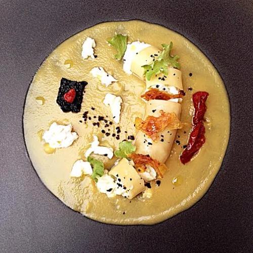 Crema di pomodori gialli e pacchero ripieno | Contest Le Strade della Mozzarella