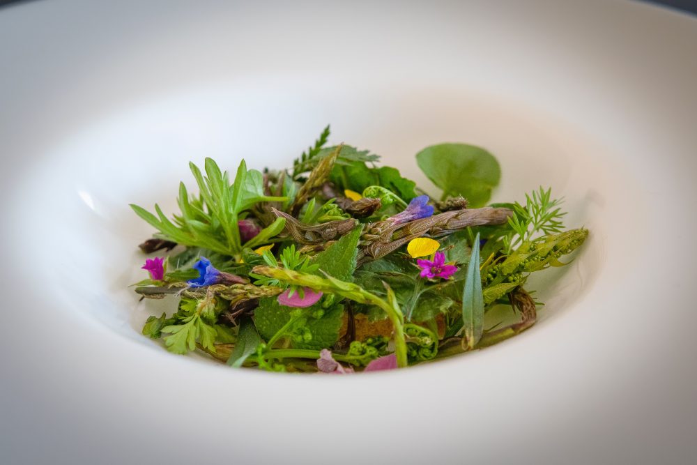Crème Brûlée di porri, asparagi, luppolo, erbe e fiori: la ricetta di Antonio Ziantoni