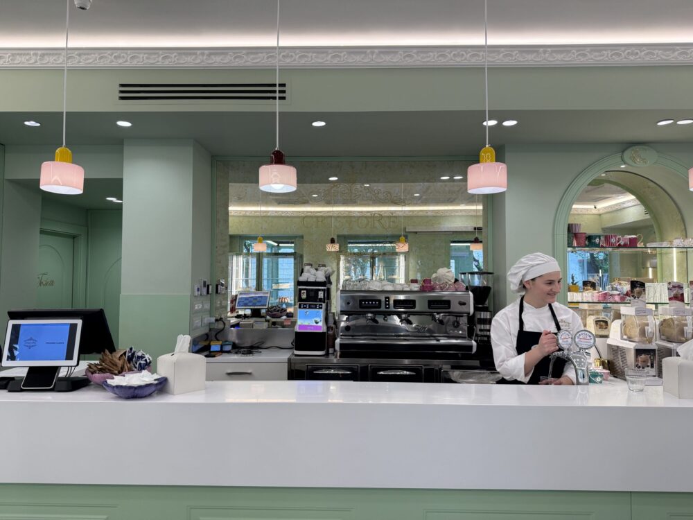 C’è un luogo, a Portici, dove il tempo non si limita a rallentare: si scioglie, come burro in una frolla calda, come glassa sotto il primo sole di primavera. Si chiama Cristorè, ed è un universo parallelo fatto di dolcezza, memoria e poesia. Un’estetica a metà tra l’eleganza parigina di Ladurée – con i suoi colori pastello, dettagli dorati e romanticismo senza tempo – e il minimalismo sofisticato delle boutique Prada di Londra, con pavimenti optical, verde menta e linee pulite.