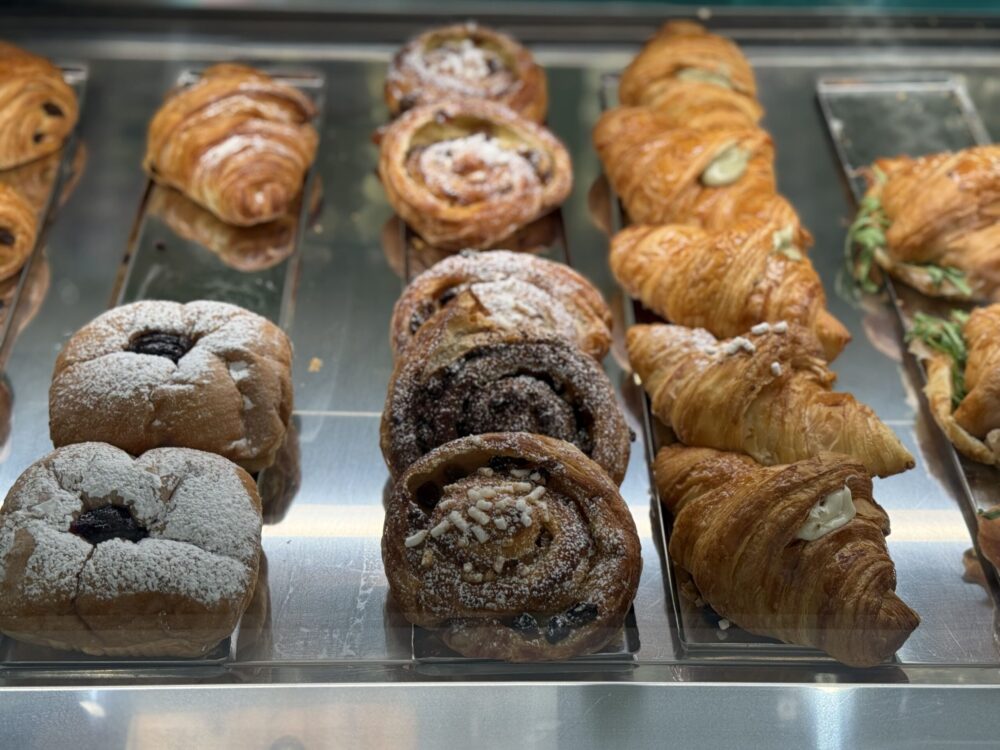 La pasticceria del mattino è un canto che inizia all’alba. I cornetti sono farciti a mano, giorno per giorno, con creme setose, confetture scelte, ricotta montata.