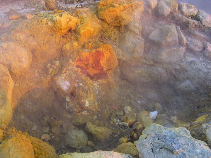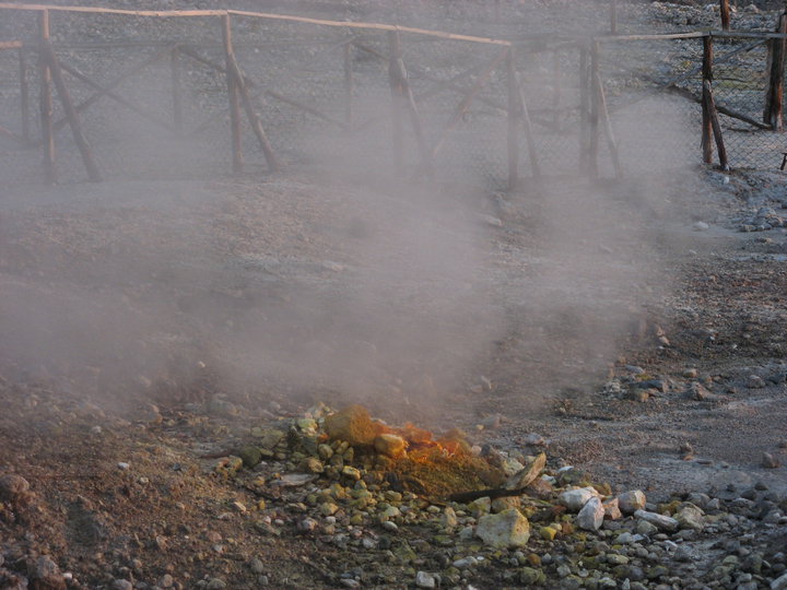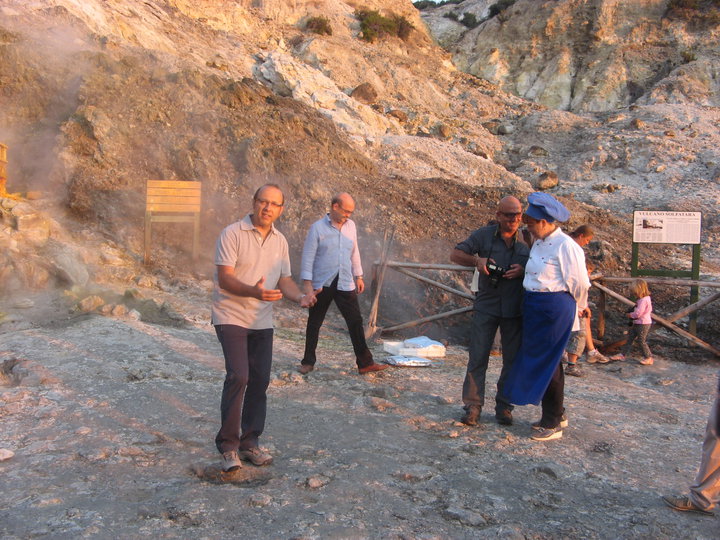 Rosario racconta che praticamente nella solfatara si è sempre cucinato, le guide vulcanologiche nei momenti di relax si divertono a preparare cibi sfruttando il calore del vapore emesso dalle fumarole del vulcano. Si perchè la solfatara è un vulcano, uno dei 40 che costituiscono il complesso vulcanico dei Campi Flegrei, ancora attivo e quindi continuo oggetto di studi, un vero e proprio laboratorio geologico all’aperto.