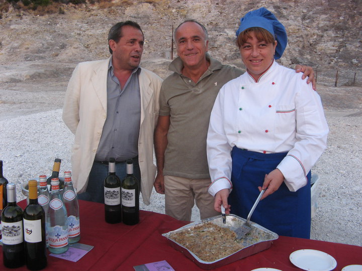 Questi vapori depositandosi sulle rocce circostanti le tinteggiano piacevolmente di colore giallo rossastro, il suolo invece è cosparso di polvere biancastra creando un ambiente molto suggestivo e rilassante. La scelta dei pesci poveri non è stata casuale, bensì voluta da Vito Trotta, fiduciario della condotta Slow Food dei Campi Flegrei, prima perchè alici e cefalo rappresentano l’identità del territorio flegreo, profondamente legato all’attività della pesca, ma anche per sottolineare il valore delle varietà ittiche ritenute minori o poco pregiate.