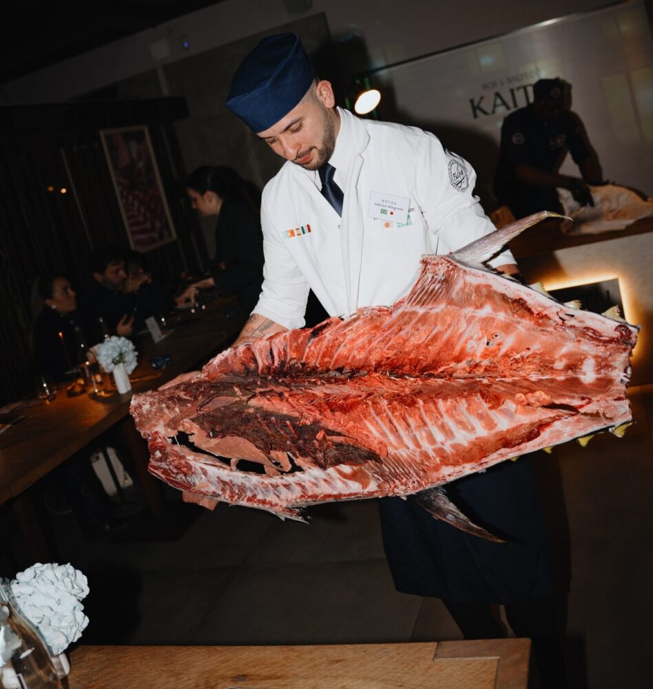 Ma cos’è una cerimonia kaitai? È il rituale con cui si lavora un grande tonno intero davanti al pubblico in contesti di ristorazione: una liturgia gastronomica in cui tecnica, estetica e rispetto per la materia prima si mescolano in un’esperienza ipnotica, accompagnata da musica popolare giapponese, racconti e, ovviamente, una degustazione.