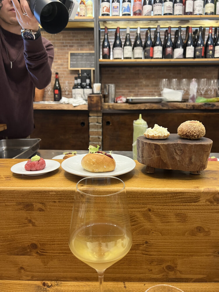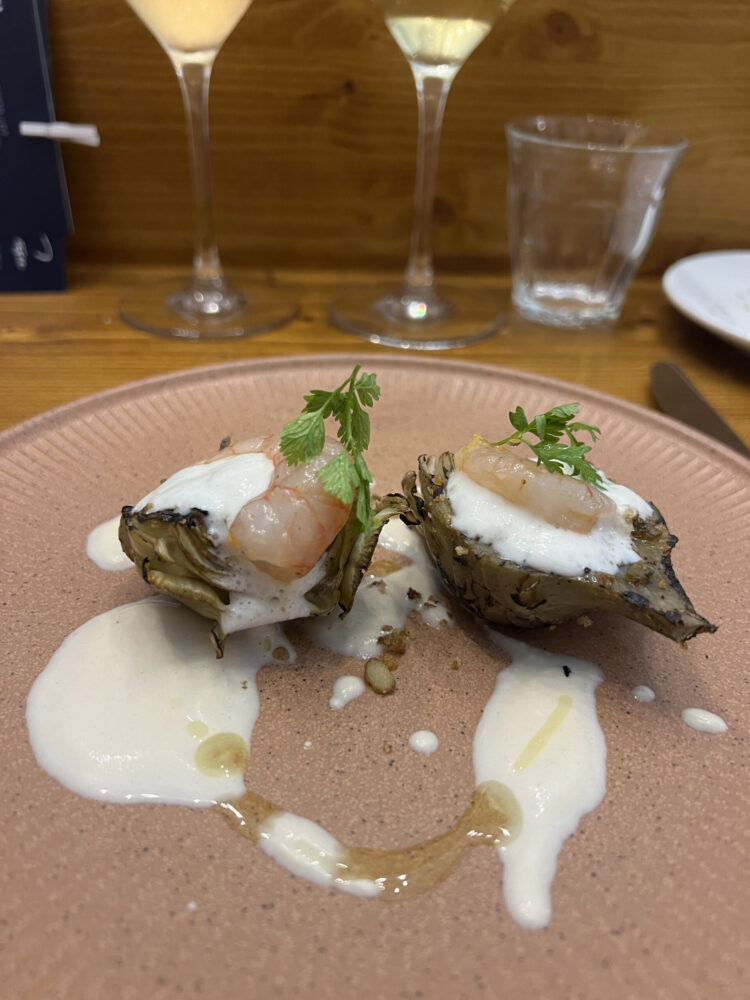 Chef Raciti ha proposto la tartelletta “alla norma” e l’iris salato “al pistacchio”, mentre chef Casu ha presentato l’hot dog di scampo con ketchup di rapa rossa e il battuto di vitello siciliano con avocado (ortaggio la cui coltivazione è in forte crescita in Sicilia). Creazioni da gustare in un sol boccone, da abbinare a una bollicina agile e di buona acidità, come il “Bolla Ciao!” di Giulia e Alberto Lot, un bianco rifermentato in bottiglia del Friuli, dai piacevoli sentori fruttati.