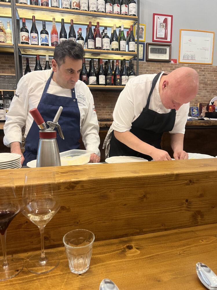 Con una cena all’insegna dell’amicizia e del confronto costruttivo, la risposta all’interrogativo iniziale è stata positiva: cucina stellata e cucina da osteria possono convivere senza che l’una calpesti i piedi all’altra.