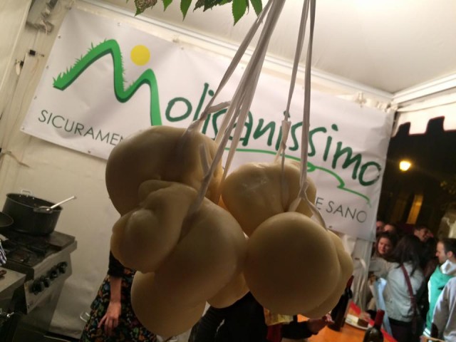 Ma anche pane e panelle e la frutta martorana dello stand siciliano con i cannoli preparati al momento; le scamorze con le pere del Molise; gli arrosticini abruzzesi, la tiella di Gaeta.