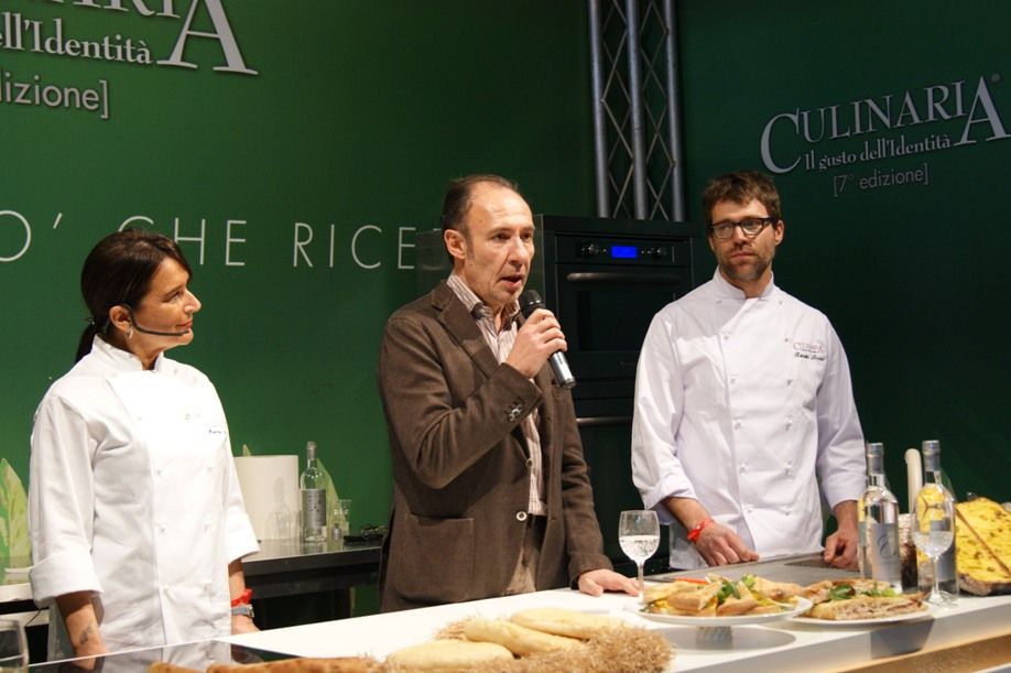Lo scorso week end, tra i vari appuntamenti enogastronomici presenti in tutta Italia, a Roma si è svolta Culinaria Il Gusto dell’Identità, che quest’anno, arrivata ormai alla settima edizione, ha avuto come tema: Ognuno è ciò che ricerca. Una manifestazione durata da sabato 10 a lunedì 12 presso il famoso mercato agricolo di Campagna Amica di San Teodoro, vicino al Circo Massimo, un mercato in cui, abitualmente, si possono trovare prodotti laziali di prima scelta, che ha visto protagonisti produttori, con desk dedicati alla presentazione dei loro prodotti, e 25 chef, tra cui Franco Aliberti, Angeli Alfredo, Betmon Stéphane, Gabriele Bonci, Renato Bosco, Cristina Bowerman, Marzia Buzzanca, Roy Caceres, Enrico Crippa, Nicola Fossaceca, Anthony Genovese, Marcello Leoni, Liberati Roberto, Mancino Vincenzo, Fausto Marino, Marino Fulvio, Pier Giorgio Parini, Gianfranco Pascucci, Niko Romito, Felice Sgarra, Salvatore Tassa, Ilario Vinciguerra. Show cooking, convegni e disquisizioni, ma soprattutto si è puntato a mostrare lo stretto ed essenziale legame che unisce la ristorazione ai produttori, per poi arrivare al consumatore. I riflettori sono stati puntati sulla qualità della materia prima, che uno chef dovrebbe usare nella sua cucina, la sua naturalezza, l’importanza del biologico e della biodinamico, quasi a sottolineare che forse il prodotto è l’ingrediente più importante per la riuscita di qualunque piatto, lavorato dall’estro e dalla bravura dello chef.