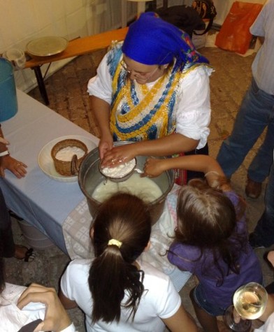 Per finire un richiamo al suggestivo spazio dedicato alla cagliata in diretta, con la signora Seranna impegnata, davanti agli occhi di curiosi e soprattutto bambini, a dimostrare la sapiente trasformazione del latte in formaggio.