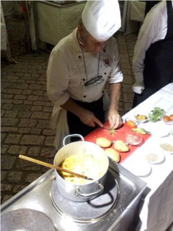 La seconda serata ha invece proposto l’idea gastronomica dello chef Pietro Del Franco, che è stata un’esaltazione degli ortaggi prodotti dall’azienda Elda Guerrera. Nel vassoio la proposta del patapan, fresca insalatina con pane raffermo, pomodori e patate, una zuppetta di zucchine e fagioli, l’innovativa patata al forno ripiena con pasta di salsiccia ed il rinfrescante gelato ai fichi di Pontelandolfo. Il vino protagonista della serata il Sannio Falanghina 2010, sempre di Terra di Briganti, presentato in piazza da Romeo De Cicco e l’esperto sommelier Michele Giordano, impegnato anche nella degustazione dell’Ortice di Rinaldi.
