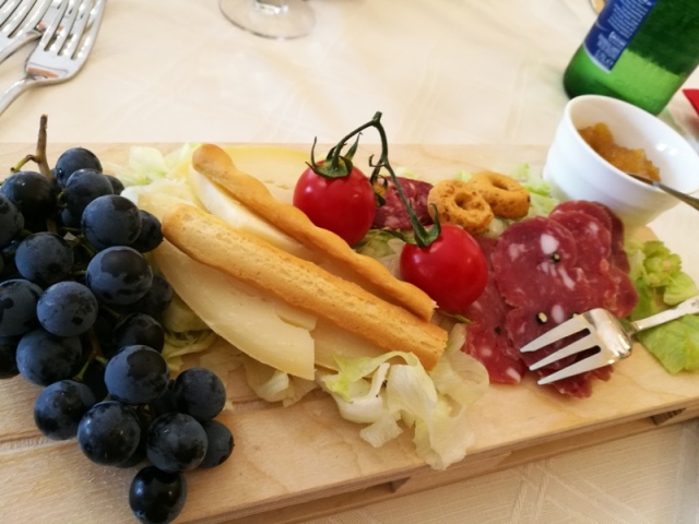 Il mare è ben presente, richiesto soprattutto dalla clientela del posto. In carta: Fiori di mazzancolle su letto fi ceci e pomodorini gialli; Polipo grigliato su crema di patate di Calvarusio e chips di pane; Grigliata e Frittura. Non manca la Tagliata, con porcini (questo il periodo ideale) e rosmarino oppure con rucola e scaglie di parmigiano.
