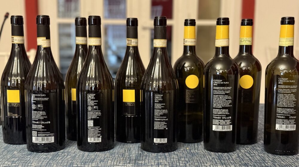 Ho partecipato con orgoglio e con un’emozione autentica a una masterclass tenutasi a Palazzo Paternò, durante la seconda edizione de Il Vino CE, dove la degustazione e le nozioni si sono fuse in un unico discorso vivo e appassionato. In sala c’era Antonio Capaldo, presidente di Feudi di San Gregorio, che ha parlato con la forza delle radici, raccontando territorio, vino e progetto, mentre Pietro Iadicicco, delegato AIS Caserta, ha guidato i calici con competenza e quel tono che sa rendere visibile l’invisibile del vino. Il protagonista è stato Cutizzi Greco di Tufo DOCG, presentato in un percorso verticale attraverso cinque annate — 2010, 2015, 2019, 2021 e 2023 — che hanno disegnato la mappa del tempo e delle metamorfosi di questo vitigno.