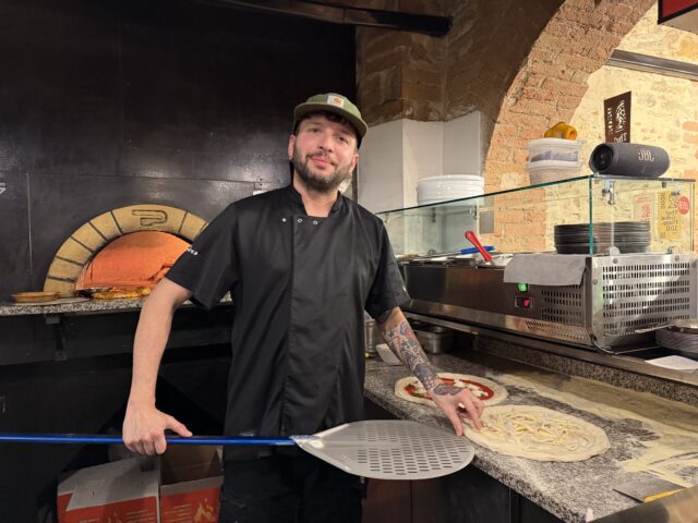 Andrea è un autodidatta. Nato con la pizza in teglia, ha aperto nel 2019 il suo “scrigno creativo” a San Sisto, il quartiere fuori le mura del centro storico di Perugia. La sua dedizione e la costante ricerca lo hanno reso presto un nome di rilievo nel panorama della pizza umbra. Trentacinque anni, con quindici dedicati alla pizza, Andrea è torinese di nascita.