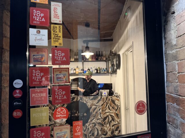 Oggi il suo lavoro raccoglie entusiasmo e attenzione: il flusso di clienti è continuo, con liste d’attesa che durano settimane, soprattutto nel weekend, considerata la dimensione contenuta della pizzeria – circa 30 coperti, parte dei quali occupati dal banco e dal forno. Ciò che emerge con forza è la sua conoscenza delle preparazioni di cucina e dei topping: creazioni che non stancano e sorprendendo per gusto e armonia.